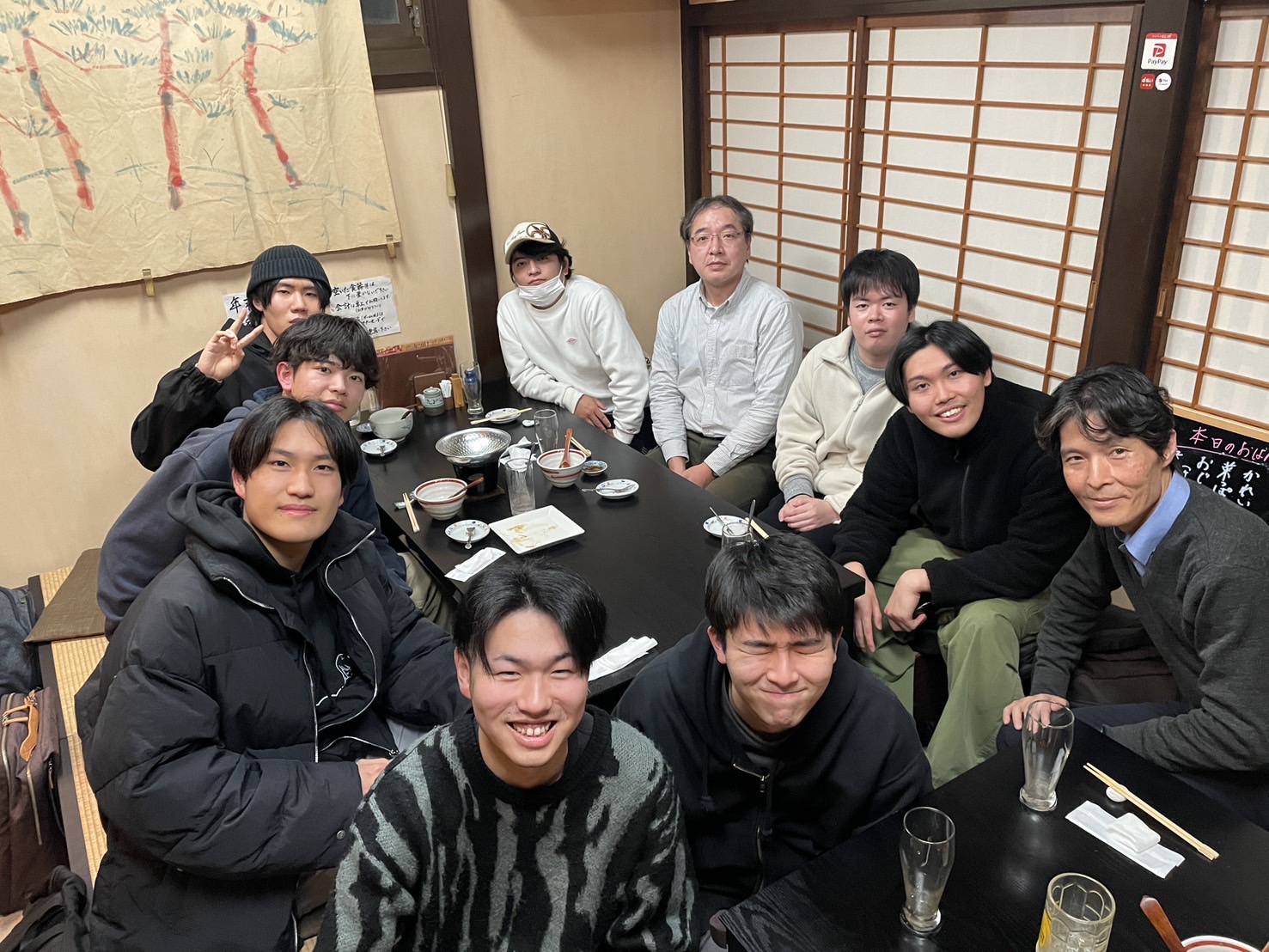 | 2025年12月19日(金) | 歌野原研究室と大西研究室と合同で研究の中間発表会がありました。その後打ち上げを行いました。
